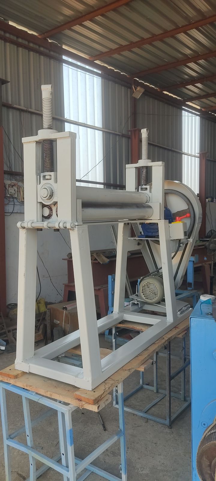 Machine is designed as per requirement of the work. We use screw as well as hydraulic system to press the sheet. We use high quality raw materials and appliances for manufacturing the machine. e. g. Bonfiglioli (German brand) gearbox, Crompton motors, EN8 or higher grade rolling shafts.