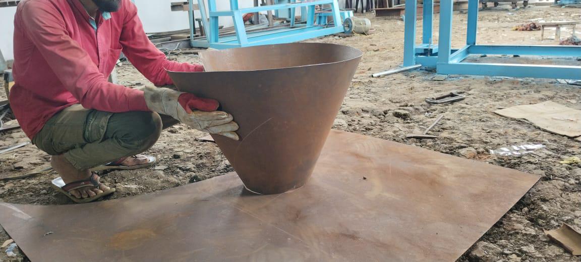 Bottom rollers cylindrical and top roller taper pyramid type. Suitable for cylinderical sheet rolling as well as conical sheet rolling